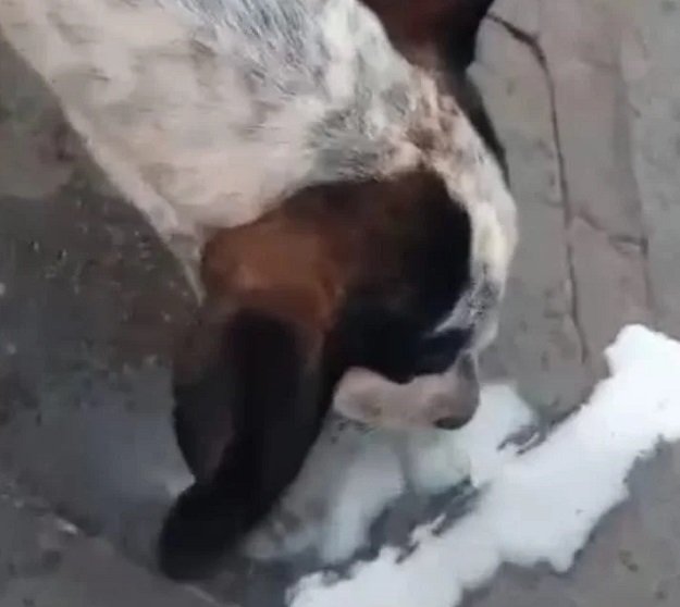 No vídeo o homem fornece a bebida alcoólica ao cão e, em seguida, mostra o estado de desorientação do animal (embriaguez).