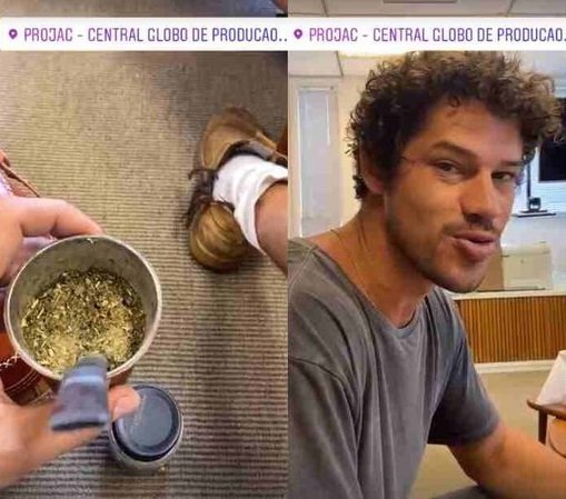 Além de Marcos Palmeira, que se mostrou extremamente viciado na bebida en até serviu ao filho de Almir Sater, o ator José Loreto voltou a gravar nos estúdios da emissora na manhã desta quarta-feira (22) e não deixou de levar a garrafa térmica com água gelada e um copo cheio de erva.