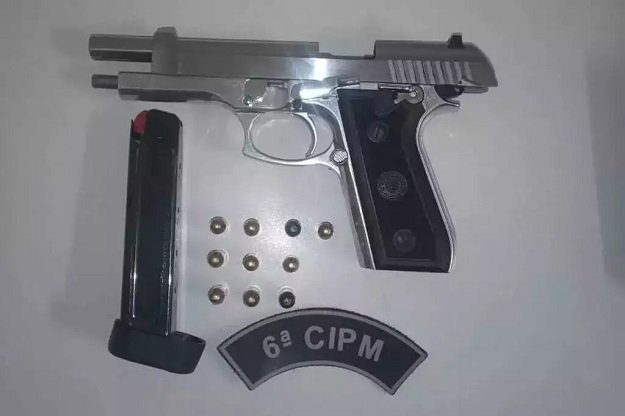 Junto da pistola foi encontrado carregador contendo dez munições intactas. Mesmo sem ter porte ou posse de arma a mulher assumiu que a pistola pertencia. A caminhonete seria da sogra, que foi comunicada para levar o veículo e a bolsa da nora, que continha R$ 760.