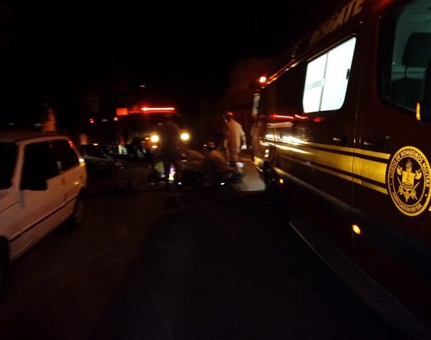 Chegando ao local as Guarnições do Corpo de Bombeiros encontraram o condutor da moto deitado ao solo apresentando ferimentos na face e no tórax.