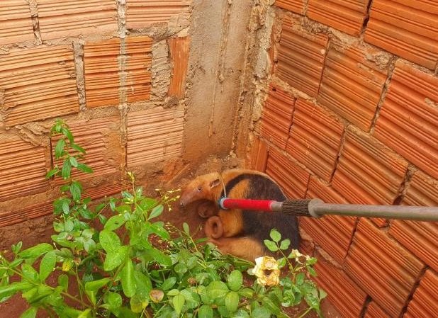 Uma moradora do centro da cidade de Terenos acionou à PMA de Campo Grande ontem (3) à tarde, informando que um animal da espécie tamanduá encontrava-se em sua residência.
