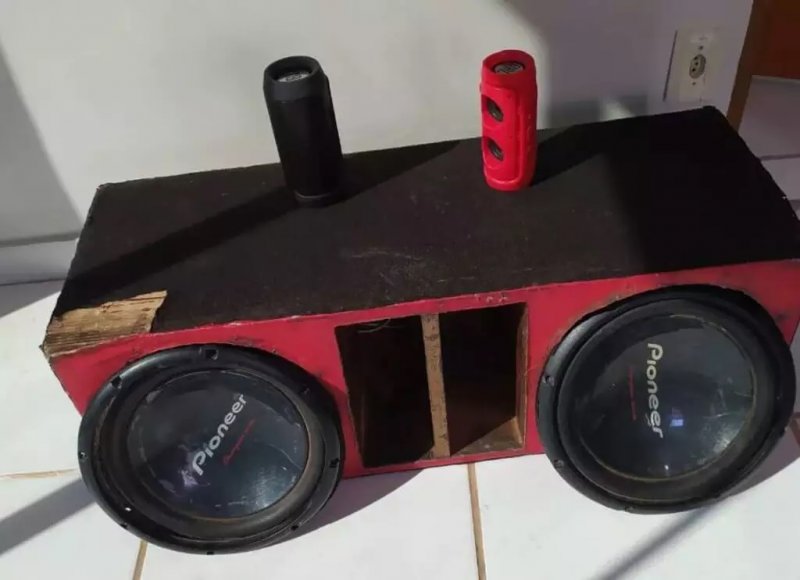 Caixas de som apreendidas com autor. (Foto: Divulgação / Polícia Civil de MS)