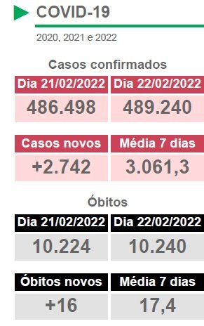 aqui todos os detalhes do boletim epidemiológico Covid e Influenza desta terça-feira, 22 de fevereiro de 2022.
