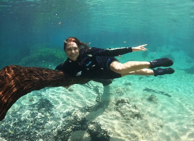 Giovanna conta que se superou ao fazer rapel no Abismo Anhumas. “Tive até parceria da GoPro Bonito para registrar. Desci, mas mal dormi na noite anterior. Quando chegou a hora, meu guia me passou muita segurança e ainda gravou minha descida por pura gentileza. A equipe que te coloca no equipamento está bem calma e adora o que faz. Uma experiência única!”.