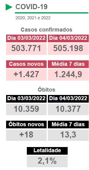aqui todos os detalhes do boletim epidemiológico Covid e Influenza desta sexta-feira, 04 de março de 2022.
