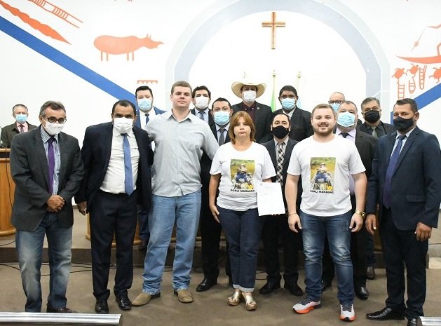 Ela foi entregue pelos autores, ladeado dos demais pares da Casa de Leis, à família enlutada, que inclusive esteve no plenário para recebê-la.