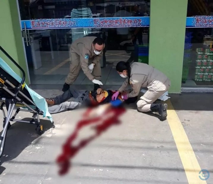 Homem é atacado à facadas no pescoço quando saía de supermercado