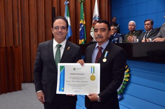 O deputado estadual Felipe Orro concedeu a Comenda Guararapes ao capitão Israel Nantes Gonçalves durante solenidade na Assembleia Legislativa como forma de reconhecimento ao militar por suas relevantes contribuições ao Estado de Mato Grosso do Sul, bem como ao município de Aquidauana.