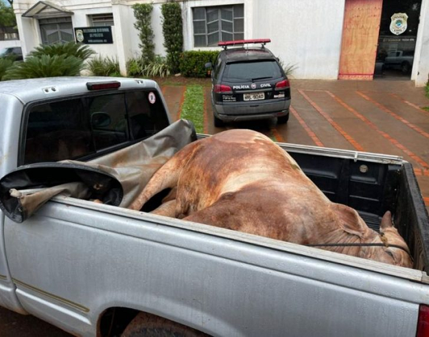 Dupla é presa com boi furtado e morto em carroceria de caminhonete