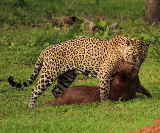 Estudante de biologia flagrou momento em que maior felino das Américas se alimentava de capivara, em Miranda