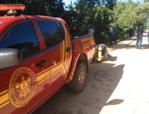 Equipe dos bombeiros chegou ao local ainda na noite de quinta-feira (14). Segundo os militares, a água que normalmente é cristalina estava bastante turva e com correnteza. Por isso, o carro foi amarrado.