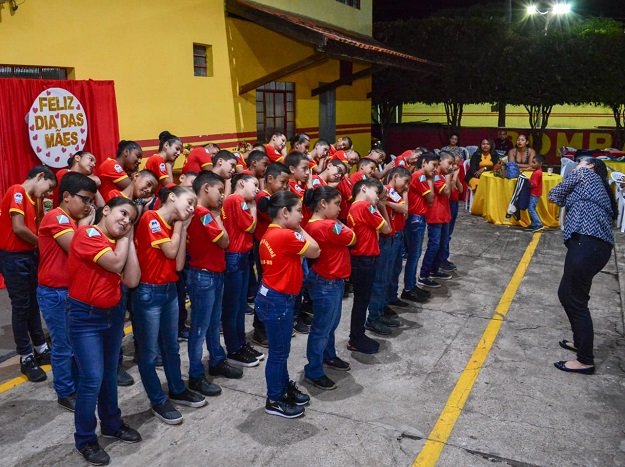 As 40 crianças alunas do projeto apresentaram uma linda canção para as mães e entregaram lembrancinhas. Ao final, todos compartilharam de um delicioso jantar.