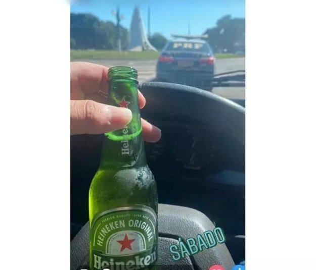 Um motorista fez postagem em suas redes sociais com uma cerveja na mão e as mãos no volante, indicando que estava bebendo e dirigindo atrás de uma viatura da PRF (Polícia Rodoviária Federal). A foto foi repercutida pela página Nova Fogo, que contém 31,3 mil seguidores, no último sábado (4). Na publicação, um PRF comenta a atitude do rapaz e informa que ele "será convidado formalmente para fazer uma educação para o trânsito em breve".
