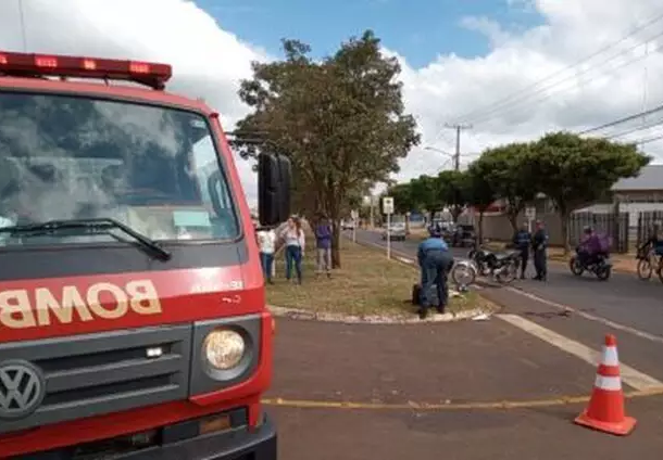 João Marcos pilotava uma motocicleta quando atropelou uma ciclista no cruzamento na Avenida Mato Grosso do Sul com a Rua Campo Grande, em Chapadão do Sul, na tarde deste domingo (12).