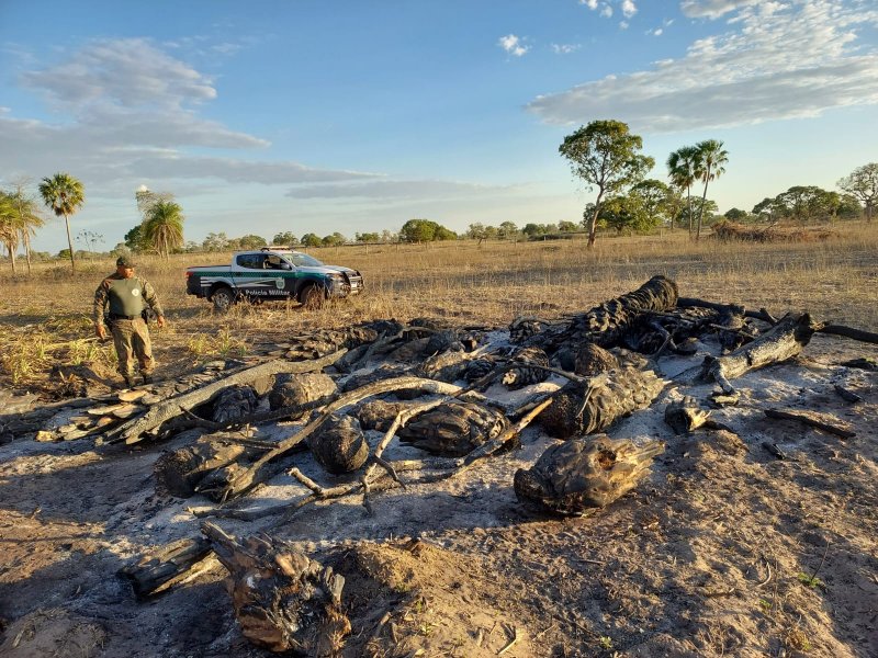 A equipe policial constatou no local, que o proprietário havia realizado uma limpeza da área de pastagem e amontoado a vegetação de arbustos e galhadas em leiras e incendiado o material.