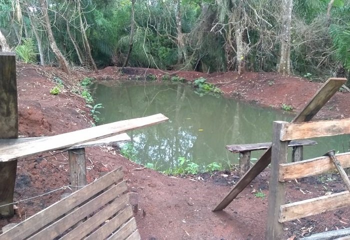 Com uso de máquinas, a proprietária rural construiu o tanque de piscicultura, derrubando a vegetação de uma área de matas ciliares do córrego, que corta a propriedade, sem autorização ambiental. As atividades foram interditadas.