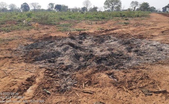 A equipe foi ao local e verificou que o infrator havia realizado a limpeza de uma área de plantio de eucalipto e tinha incendiado os restos das galhadas, que estavam dispostos em amontoados (leiras) e que, consequentemente, não havia licença ambiental, tendo em vista que a queima controlada está proibida no Estado de Mato Grosso do Sul até 31 de dezembro de 2022, inclusive, com suspensão de autorizações concedidas anteriormente à Portaria publicada neste mês.