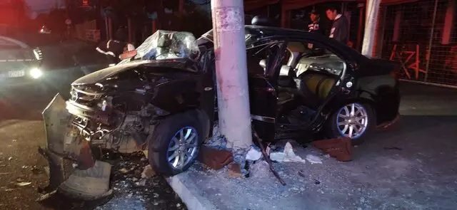Veículo Jac Motors de cor preta colidiu contra poste na Avenida Albert Sabin, no Taveirópolis, pouco antes das 4h da manhã deste domingo (4), após o condutor perder o controle da direção.