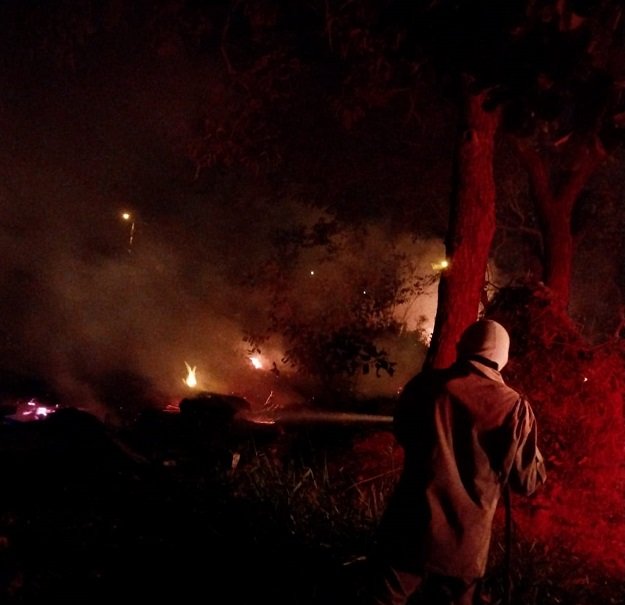 A guarnição realizou o combate em uma área de aproximadamente 01 hectare, sendo empenhados 5 militares e aproximadamente 500 litros de água.