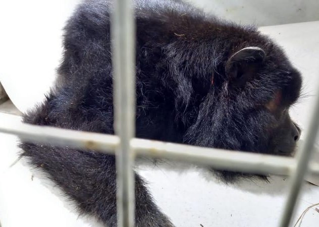 Policiais Militares Ambientais de Dourados resgataram um animal silvestre da espécie Alouatta seniculus (bugio) vítima de atropelamento na BR 163 na quinta-feira (8).