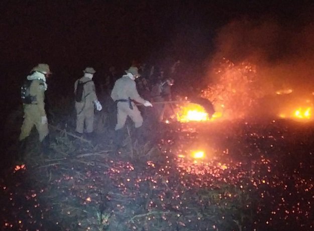 Mais uma equipe de combate a incêndio florestal, composta por 05 (cinco) militares, foi acionada na noite de ontem e tinha hora marcada para deslocar em direção ao Porto da Manga as 03h00min, com a missão de levar equipamentos e prestar apoio a outras duas equipes que já se fazem presentes no local desde a madrugada de ontem.