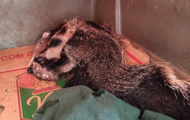 PMA de Dourados resgata filhote de tamanduá-bandeira cuja mãe fora morta por atropelamento e orienta sobre os procedimentos em atropelamentos de animais