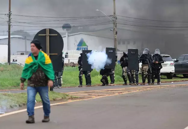 Os policiais mudaram a tática e passaram a usar granada de gás para forçar a saída dos manifestantes. A ação mais contundente durou cerca de 15 minutos e a pista foi liberada. O grupo permanece sob uma barraca, mas longe da pista. Mais cedo, disseram que tinham intenção de continuar o movimento, mas na frente do CMO (Comando Militar do Oeste).