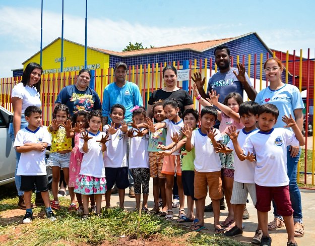 As árvores foram plantadas em local estratégico para ajudar a reduzir a incidência de luz solar, que causa desconforto térmico e propiciar bem-estar para as crianças e a população no CMEI.