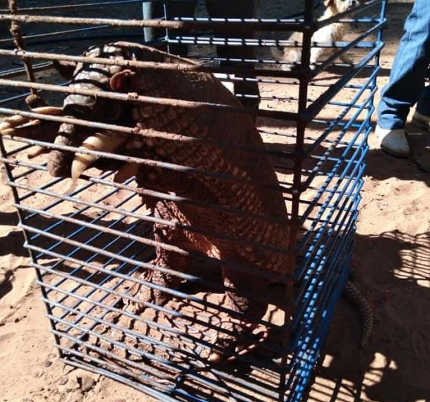 PMA de Cassilândia captura depois de uma saga de dois dias tatu-canastra de mais de 40 kg que quase derrubou casa em sítio escavando por baixo e o devolve ao seu habitat