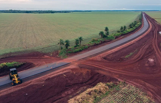 A implantação e pavimentação de rodovias estratégicas para o desenvolvimento de Mato Grosso do Sul seguem em pleno andamento e já está mudando a realidade de regiões produtoras, como na MS-166, entre a MS-460 e a BR-267 – Posto Polaco, em Maracaju.