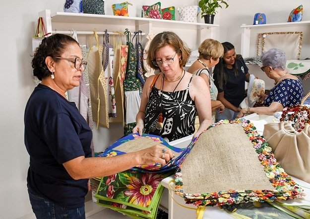 A partir desta terça, o espaço Mãos de Fada está aberto à população de segunda a sexta-feira, das 7h às 13 horas, colocando à disposição da clientela, desde terço em fuxico, bolsas em crochê, almofadas, porta panetones, panos de pratos, toalhas de banho e de mesa com tema natalino.