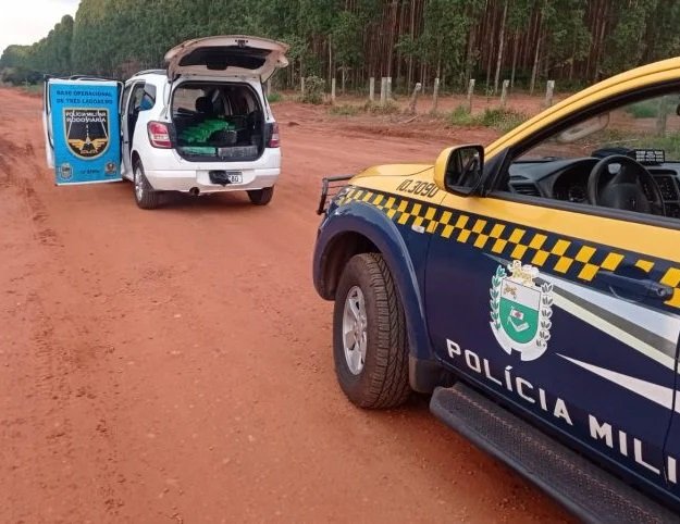 Os Policiais Militares realizavam fiscalização na MS 395, em Brasilândia, quando deram ordem de parada ao veículo Chev/Spin, cor branca, placa de Uberaba/MG.