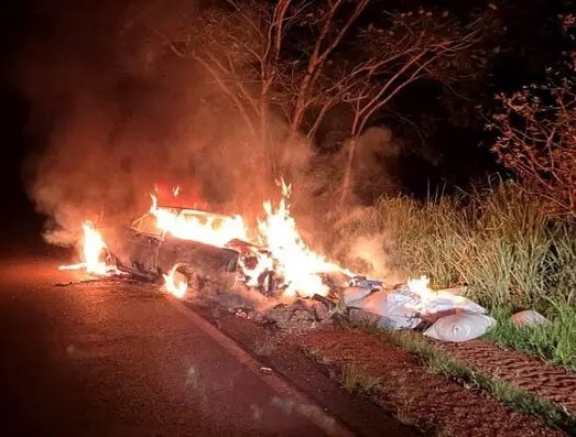 O veículo ficou totalmente destruído pelas chamas. Vários sacos com serragem escondiam tabletes de maconha estavam na picape e também queimaram. Equipe do Corpo de Bombeiros chegou a ser acionada para controlar o incêndio e a PRF (Polícia Rodoviária Federal) registrou a ocorrência.