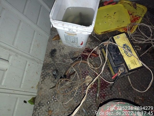 O infrator afirmou que já havia armado três anzóis de galho, que foram retirados pelos Policiais e que os peixes muçum utilizados como iscas teriam sido capturados em uma lagoa na sua propriedade, pesca esta, também proibida.