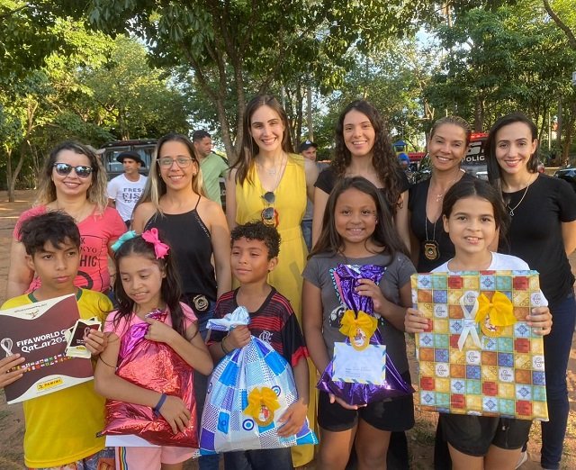 A Polícia Civil, por meio da Delegacia de Atendimento à Mulher de Aquidauana e 1ª Delegacia de Aquidauana apadrinhou e entregou presentes de natal para 37 crianças do projeto de robótica da biblioteca do SESI. A entrega dos presentes ocorreu, nesta terça-feira, 13/12, no Parque Ecologico da Lagoa Cumprida de Aquidauana-MS e contou com a presença do Papai Noel e de equipes de ambas delegacias.