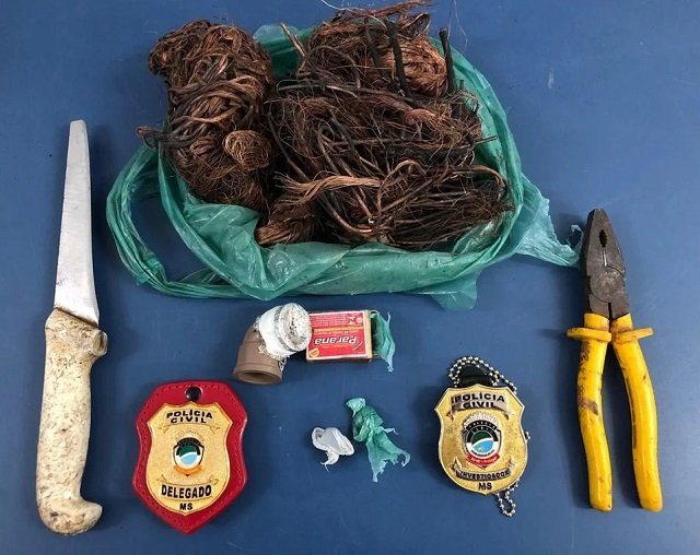 O autor já estava sendo investigado por diversos furtos na região central de Miranda. No momento da prisão ele estava com duas sacolas: a primeira de plástico contendo 1,6Kg de fios de cobre e a outra com um alicate e uma faca.