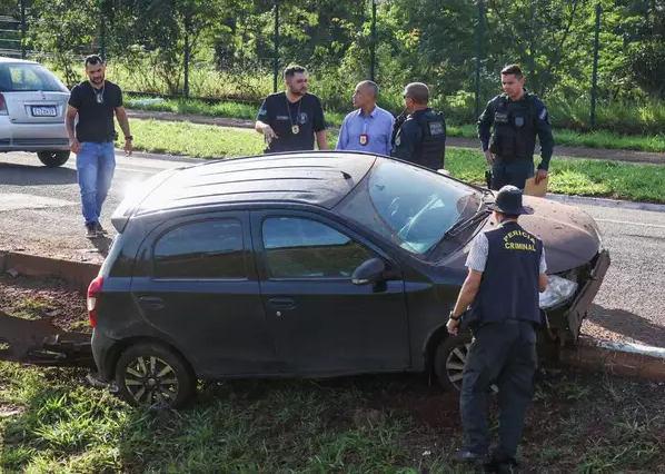 Por volta das 4h30, policiais militares do Batalhão de Trânsito foram acionados para atender ocorrência de acidente na Avenida Ministro João Arinos. No canteiro central, em frente à empresa MSGás, havia um Toyota Etios, de cor preta, com marcas de acidente e barro nos pneus, abandonado no canteiro central.