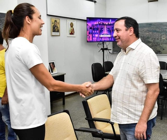 Prefeito de Aquidauana recebe visita da atleta do vôlei Talita Antunes