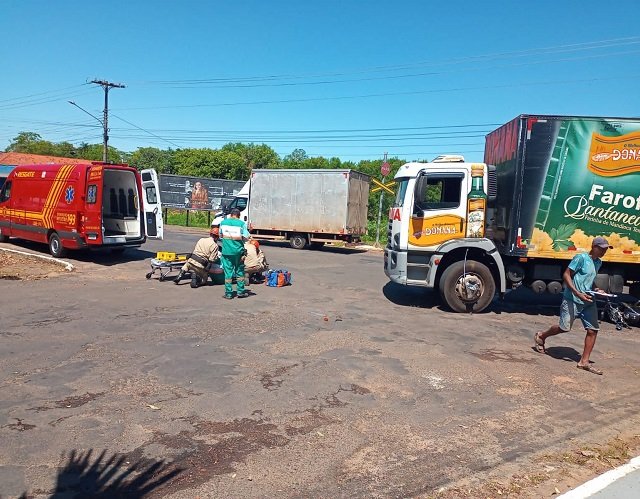 O acidente envolveu um caminhão baú e uma motocicleta Bros.