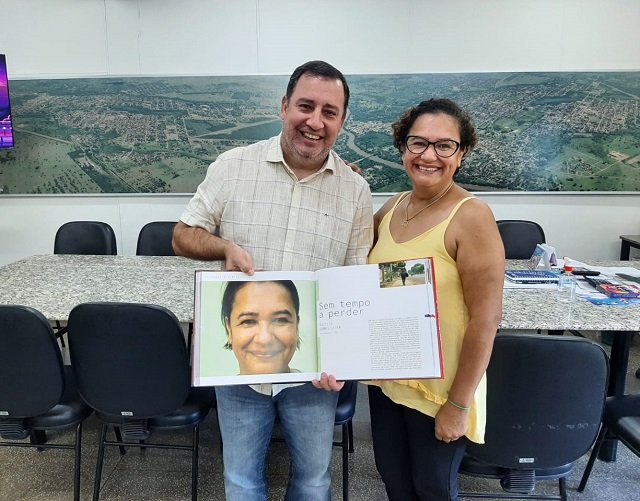 “Fico muito feliz com essa notícia, em ver essa homenagem às duas agentes de saúde, que são muito queridas por todos nós, que eu admiro muito pelo trabalho, por não terem tempo ruim e nem preguiça para atender nossa comunidade. A história de luta e superação da Célinha e da Tereza são exemplos de vida pra gente”, afirmou o prefeito Odilon, agradecendo pelo livro de presente.
