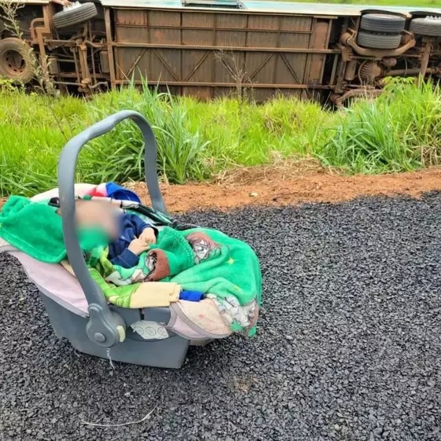 "Milagre", diz bombeiro ao compartilhar imagem de bebê ileso após ônibus tombar