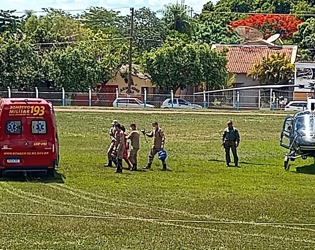 Diante dos fatos foi acionado o Centro de Operações do Corpo de Bombeiros em Campo Grande, que solicitou apoio de helicóptero da Coordenadoria Geral de Policiamento Aéreo para fazer a remoção aero médica da vítima devidamente acompanhada por Oficial Médico do Corpo de Bombeiros Militar de MS.