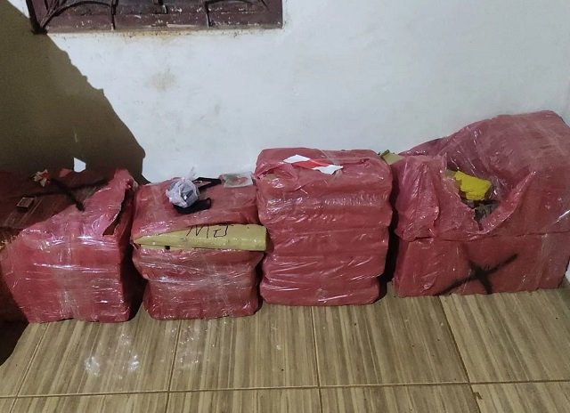 A droga, pesada posteriormente, totalizou 198 kg de maconha, divididos em 190 tabletes.