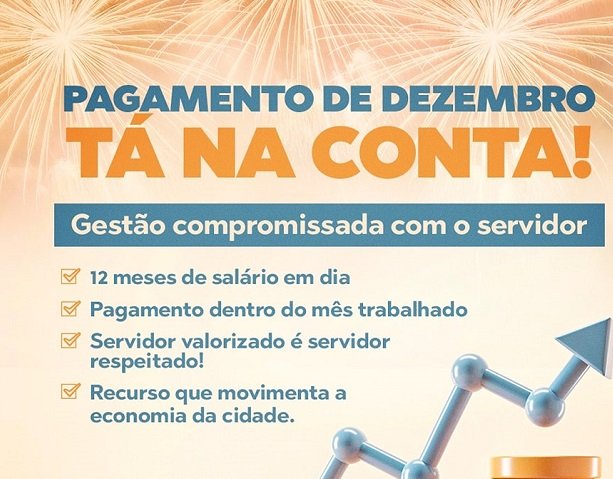 Segundo informações repassadas ao Portal de Aquidauana, com a liberação do salário de dezembro, antes da data prevista deixa claro o compromisso da gestão com os servidores. "Completamos os 12 meses pagando dentro de mês trabalhado, salário reajustado, sempre respeitando a quem trabalha e nos ajuda a cuidar da cidade", enfatizou o chefe do executivo municipal.