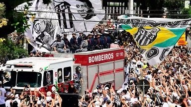 O trajeto é feito com escolta especial, incluindo batedores da Polícia Militar e do segundo Batalhão da Polícia do Exército. Sob um sol escaldante, os fãs não se importaram com o forte calor - faz mais de 30 graus em Santos - e gritaram repetidas vezes o nome de Pelé e algumas músicas alusivas ao Santos antes e assim que começou o cortejo.