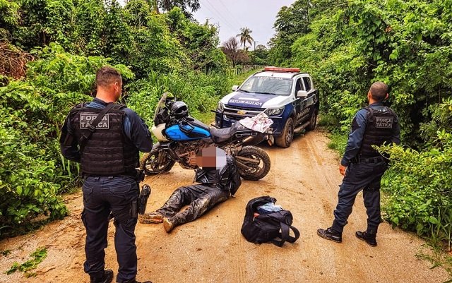 Em Corumbá MS, na tarde de ontem, sábado (14), a equipe da Força Tática recebeu a informação de que uma moto Big Trail, cor azul e sem placa, havia entrado na Estrada de acesso ao lixão, acompanhada por um veículo carro Gran Siena prata.
