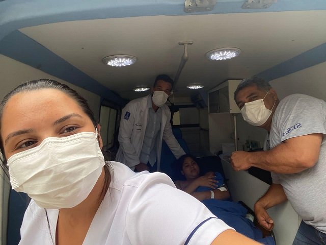 A gestante acompanhada pela enfermeira obstetra Andressa Nonato e pelo médico Eliseu Caldas, foi transportada vaga zero; em UTI Móvel com todo suporte para urgência e emergência, tendo como condutor o motorista Edson.