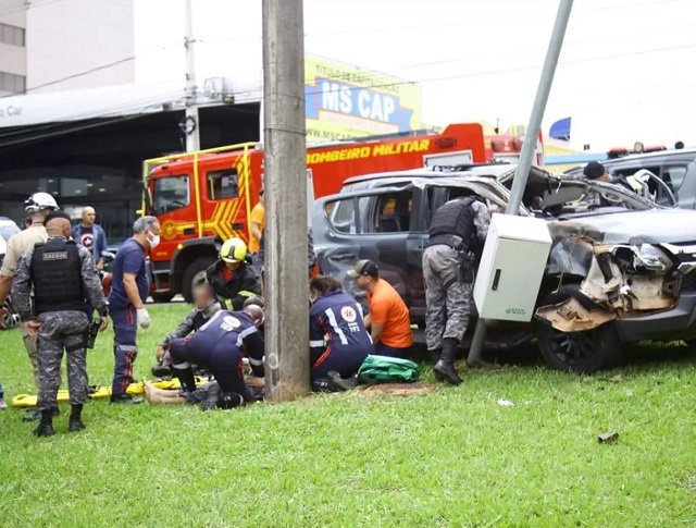 Ainda não há informação se a viatura seguia para ocorrência e passou pelo semáforo vermelho. Com a colisão, o veículo oficial capotou e parou ao colidir contra um poste no canteiro central da avenida.