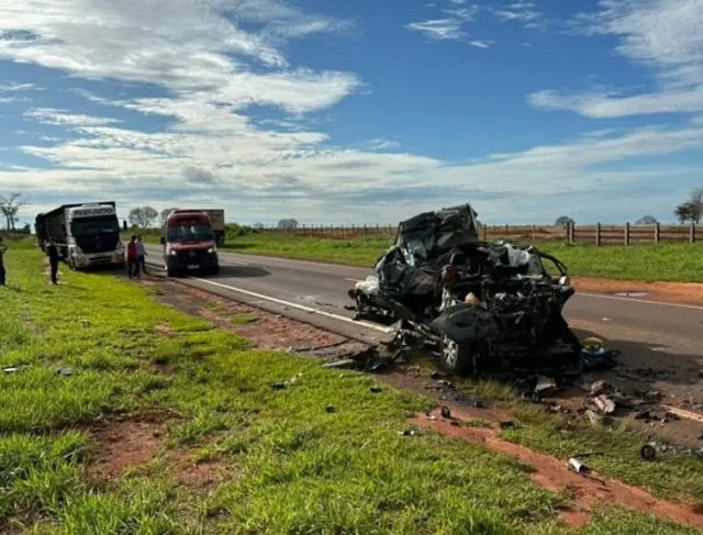 A colisão entre a caminhonete em que estava a família e um caminhão aconteceu na manhã desta quinta-feira (16), em Santa Rita do Pardo.