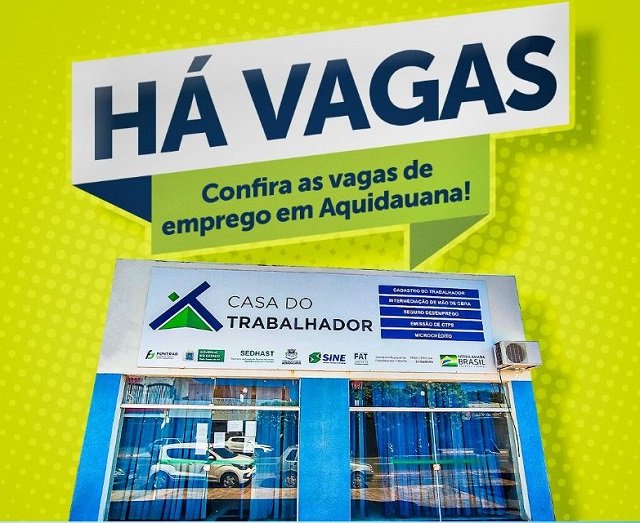 Casa do Trabalhador oferece vagas de emprego em Aquidauana e região